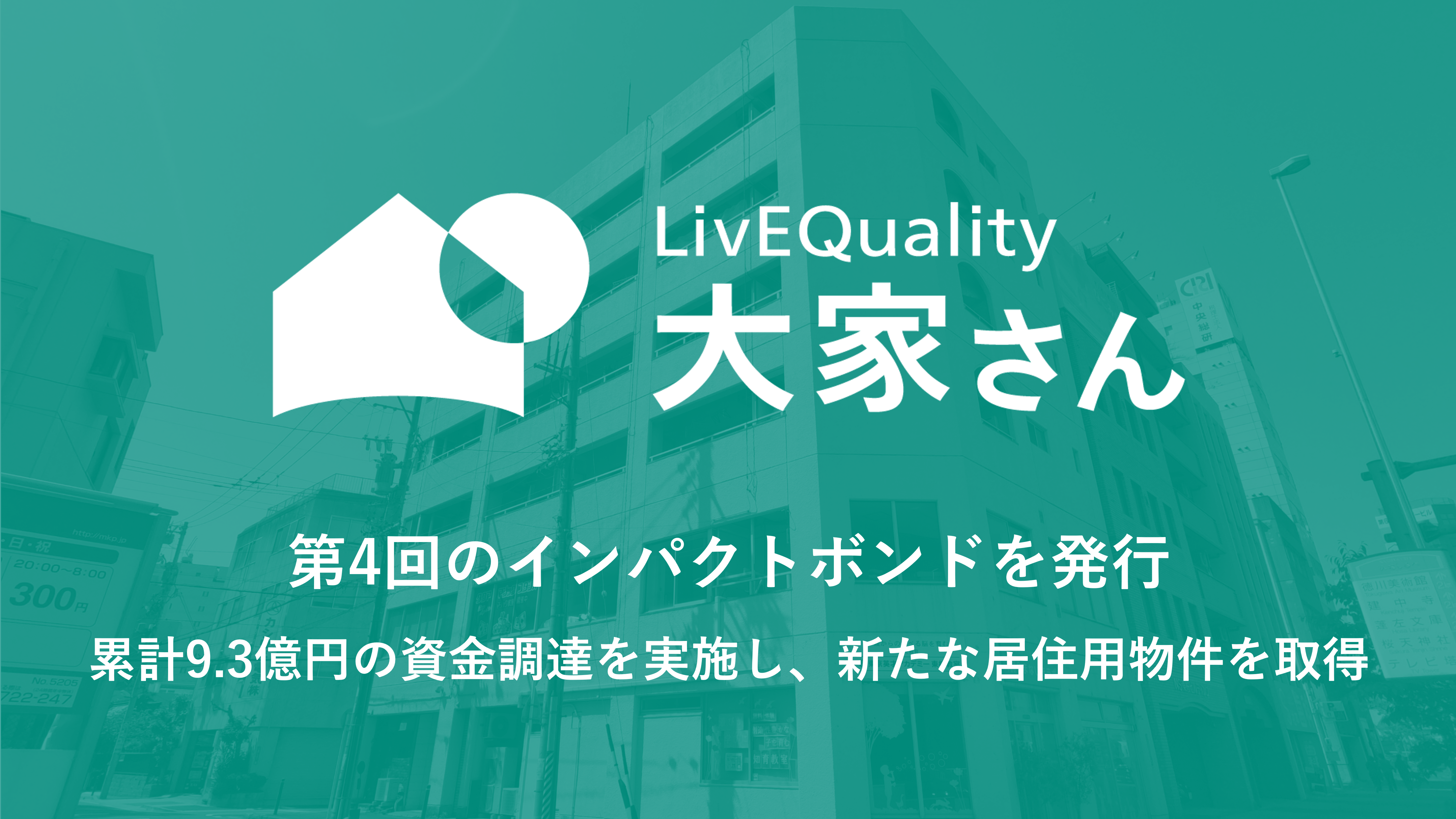 (株)LivEQuality大家さん、第4回のインパクトボンドを発行。累計9.3億円の資金調達を実施し、新たな居住用物件を取得