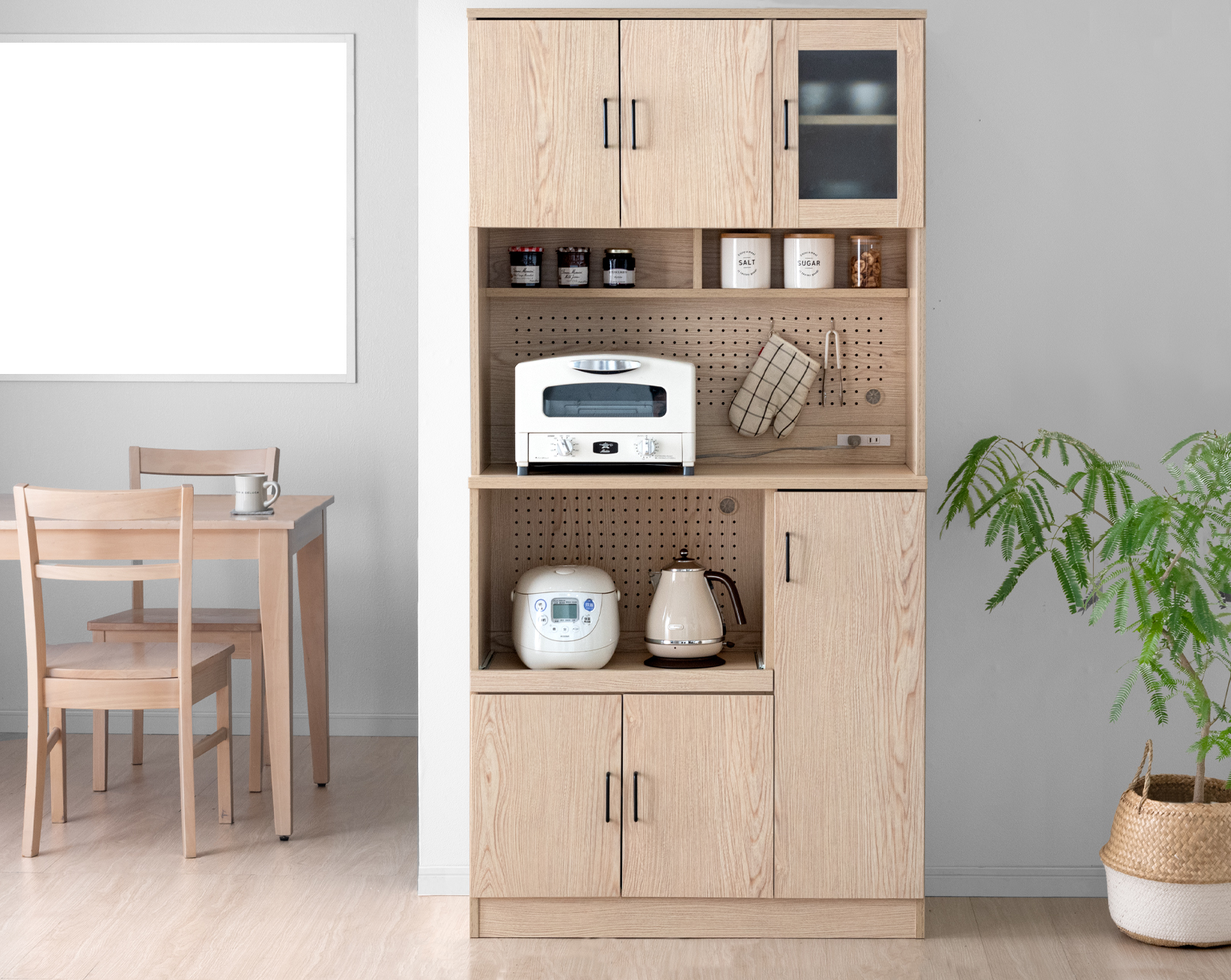 新生活にピッタリ! “有孔ボード付きキッチン収納”発売開始!家電、食器、食品ストックまで、これ1台で省スペースに整理可能