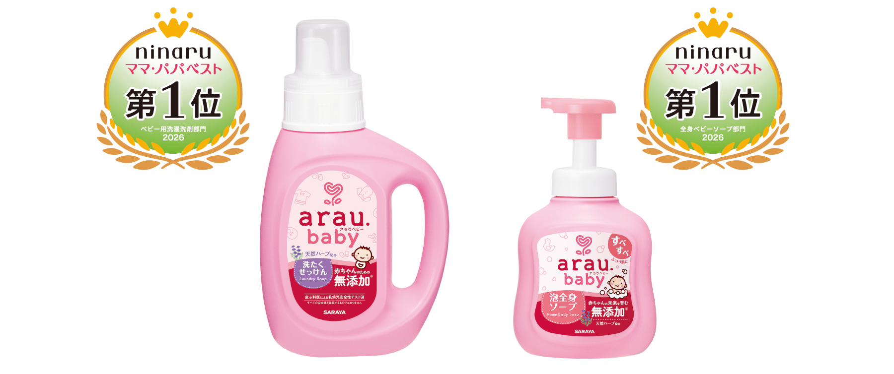「アラウ.ベビー 洗たくせっけん・泡全身ソープ」が 「ninaruママパパベスト2026」で第1位を獲得! 「泡全身ソープ」は7年連続、「洗たくせっけん」は4年連続受賞