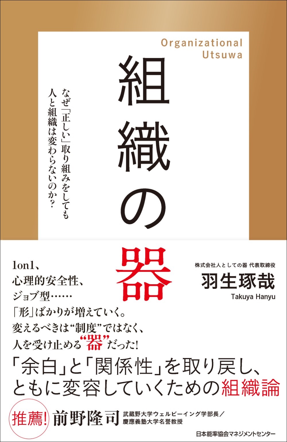 書籍『組織の器 なぜ「正しい」取り組みを導入しても人と組織は変わらないのか?』4月22日発売