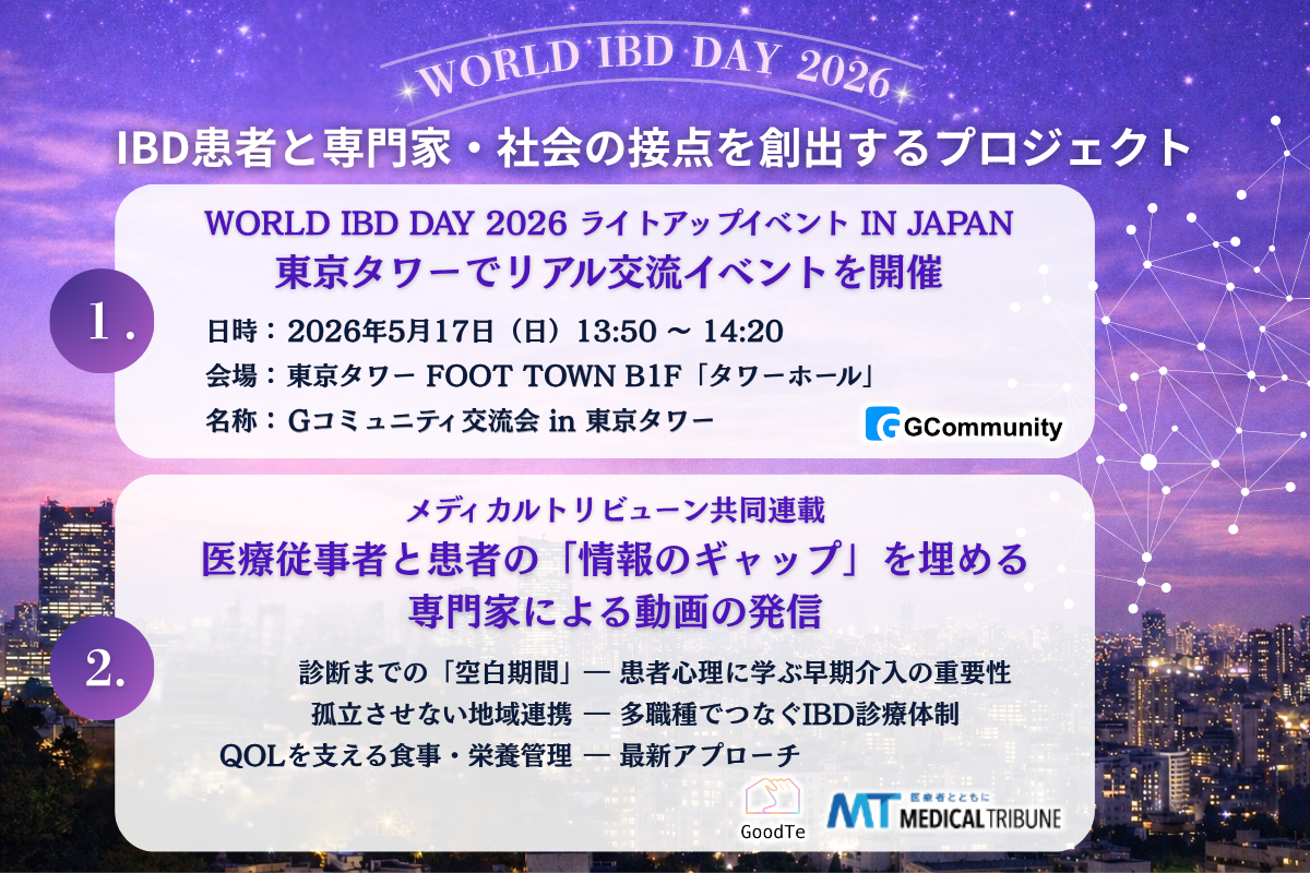 【東京タワーが紫に染まる】「WORLD IBD DAY 2026」に合わせ、グッテが潰瘍性大腸炎・クローン病(IBD)患者・ご家族交流会とMedical Tribune共同WEB企画を同時展開