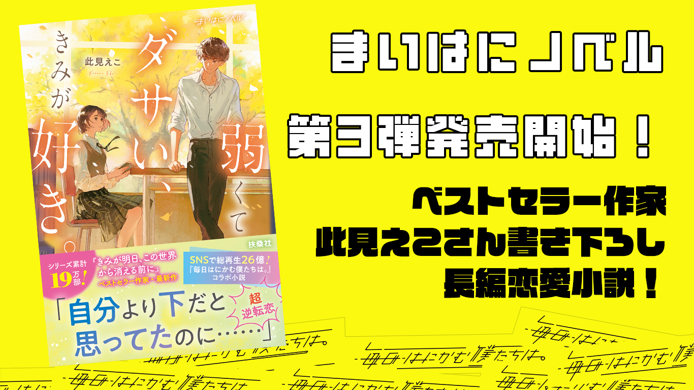 SNS総再生回数26億超え! Z世代に大人気の“まいはに”プロデュース小説第3弾は、ベストセラー作家・此見えこ書き下ろしの『弱くてダサい、きみが好き。』