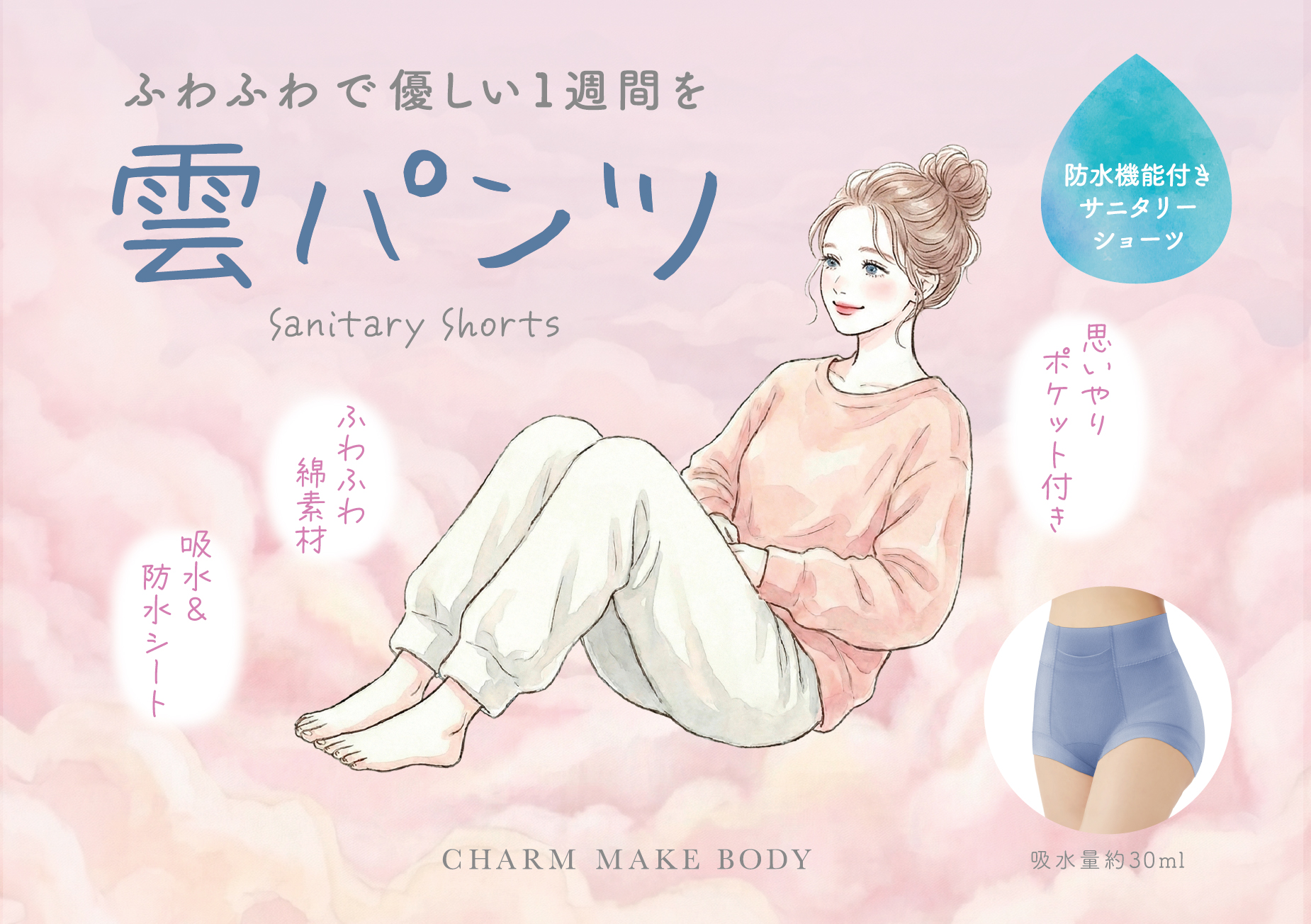 【新発売】女性が求めた肌触りを実現!“ふわふわで軽い一週間”を過ごせる!!吸水サニタリーショーツ「雲パンツ」誕生!