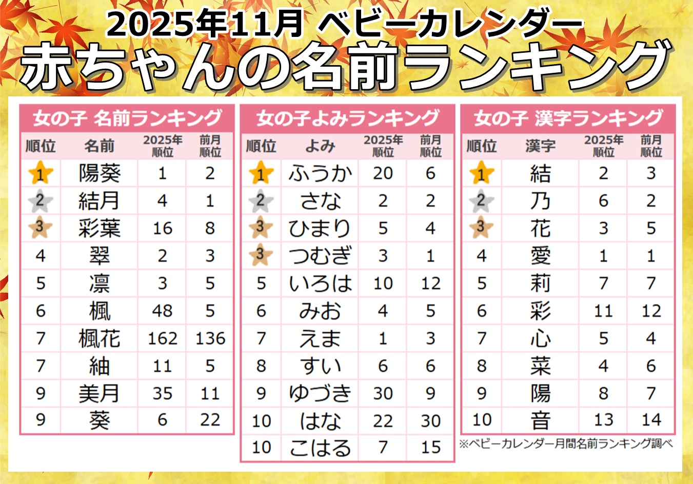 秋色から冬色へ…名付けトレンドがシフト!「メープルネーム」人気が継続中!秋冬の季節感を映す名前に注目★2025年『11月生まれベビーの名付けトレンド』発表