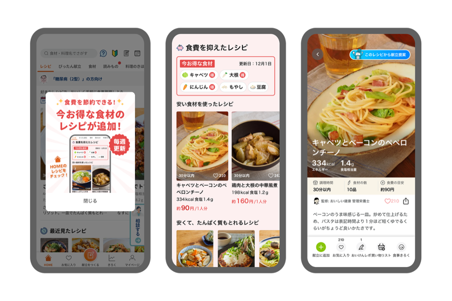 AI献立・栄養管理アプリ『おいしい健康』管理栄養士レシピに対する「食費推定AI」を新たにリリース -