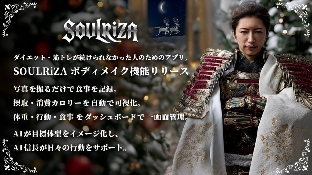 三日坊主のためのダイエット・筋トレAI伴走アプリ『SOULRiZA』、食事・体重・運動をまとめて管理できる 新機能をリリース -