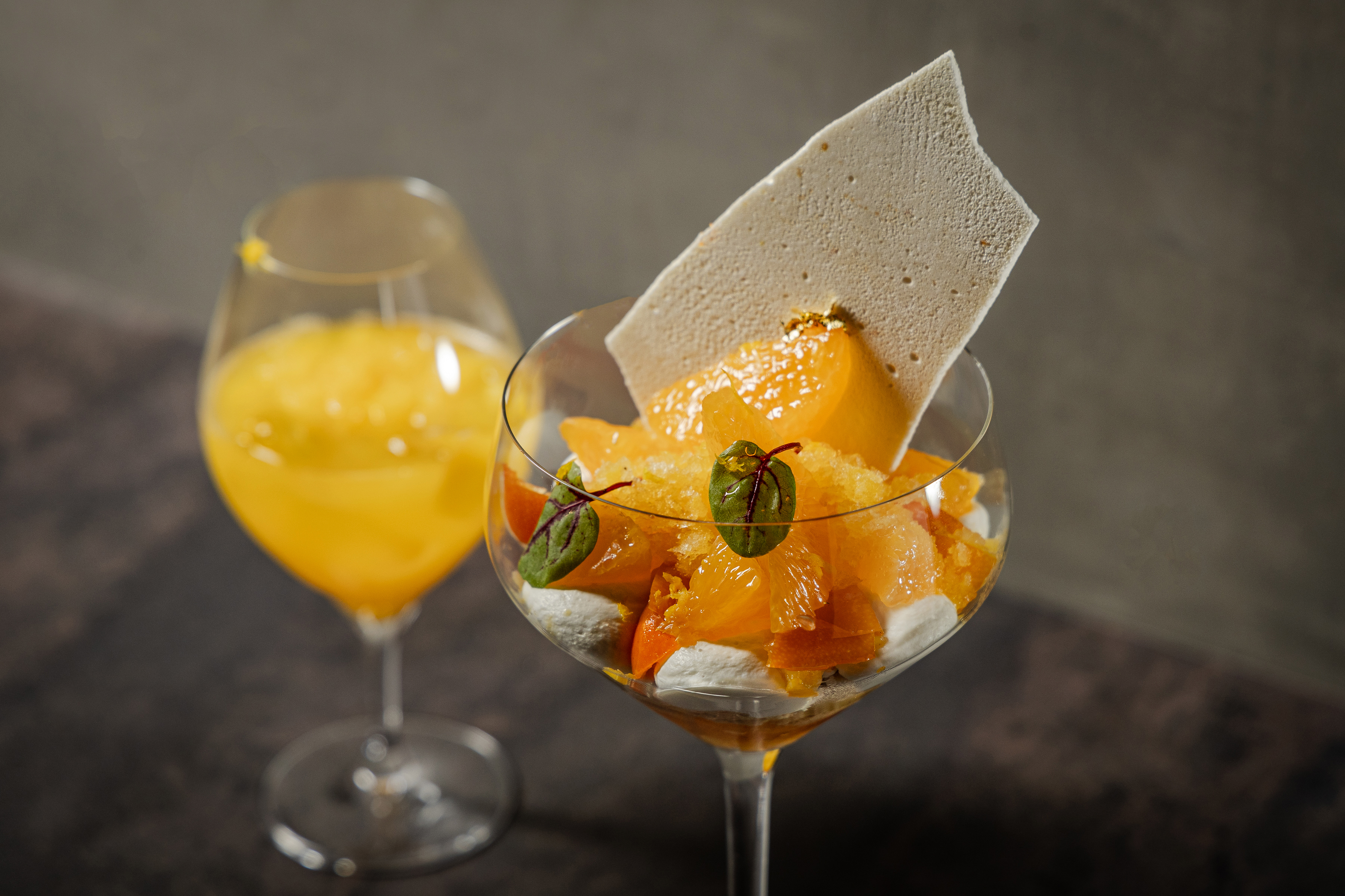 完全会員制パフェバー「Remake easy」より、人気パフェがリバイバル。愛媛県産「宝紅まどんな」やゆず、日本酒「作」の新酒を重ねた1月限定パフェ『和柑橘とゆずと新酒のバヴァロワパフェ』を提供! -