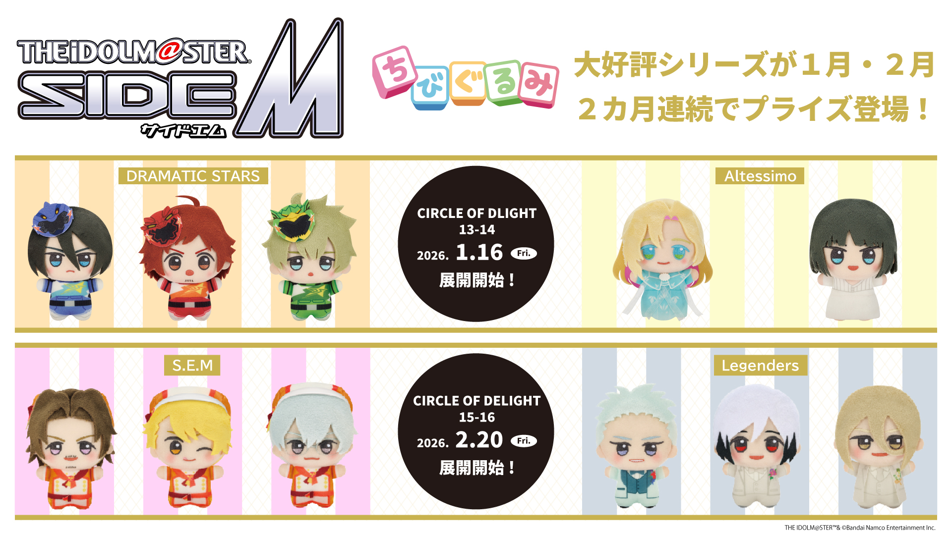 「アイドルマスター SideM CIRCLE OF DELIGHT13-14」DRAMATIC STARSとAltessimoのちびぐるみが1/16(金)よりモーリーファンタジー・PALOにて展開開始 -