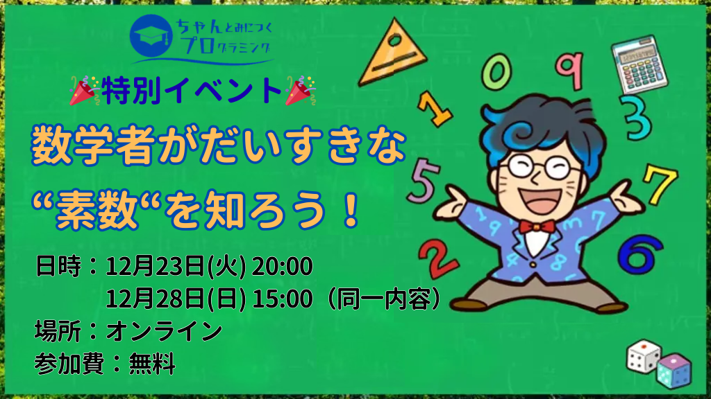 【年末イベント その1】数学者がだいすきな"素数"を知ろう!小中学生向け無料特別イベントを開催決定! -
