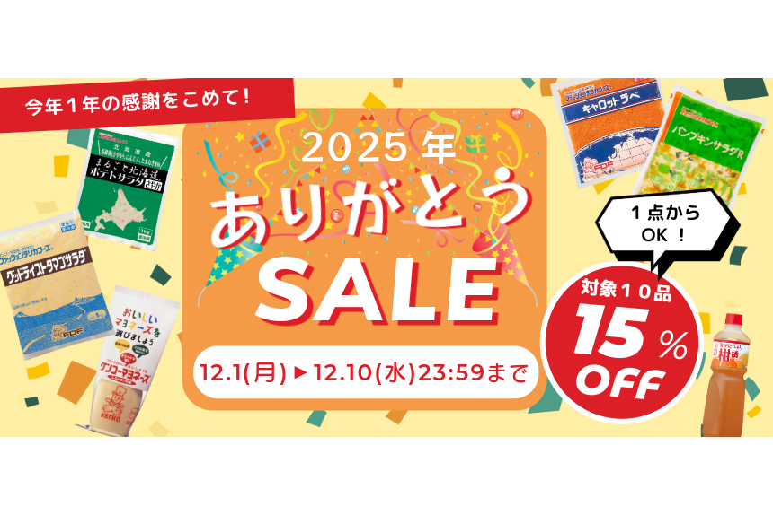 【公式通販サイト】2025年の感謝の気持ちを込めて!10日間限定でありがとうSALEを実施~食のプロに人気の10品が15%OFF~(PR TIMES グルメ)