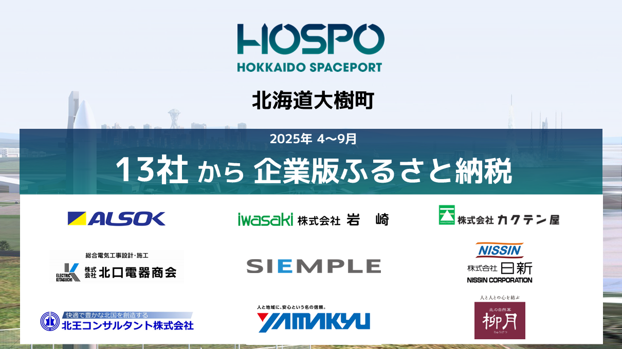 民間にひらかれた商業宇宙港「北海道スペースポート」プロジェクトに新たに13社から企業版ふるさと納税の寄附 -