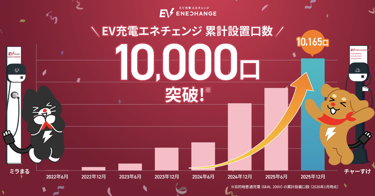 国内事業者初!ミライズエネチェンジの公共用充電器の設置口数が累計10,000口を突破! -