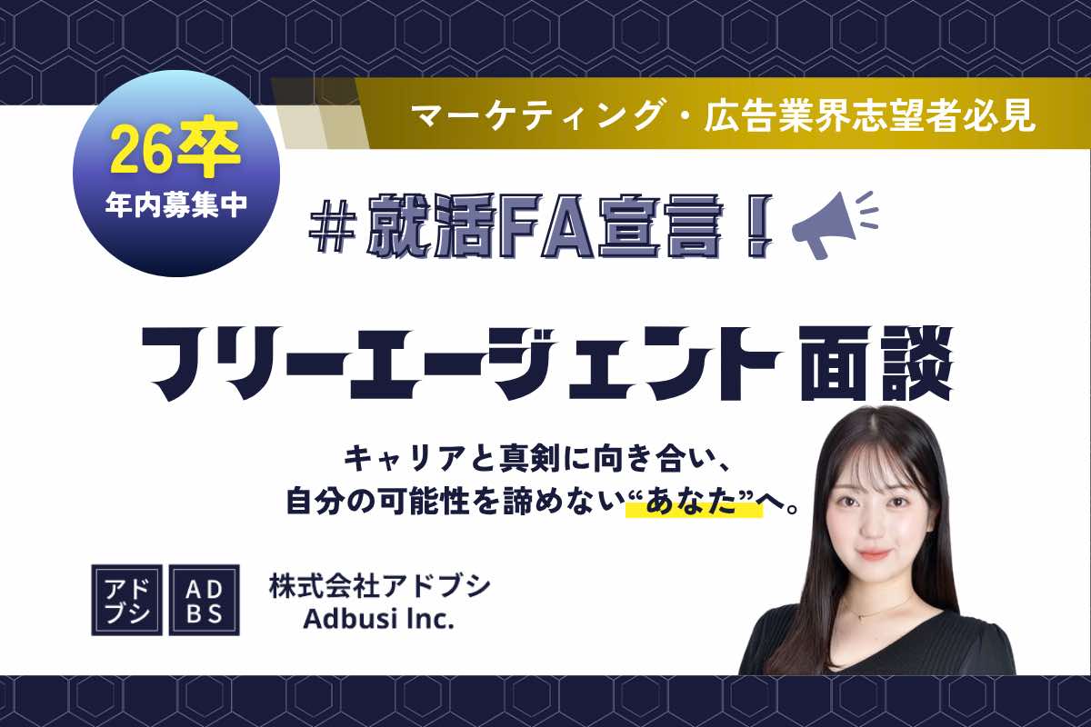 【26卒】#就活FA宣言 アドブシ、「内定後の再挑戦」を支援する「フリーエージェント面談」を受付開始!