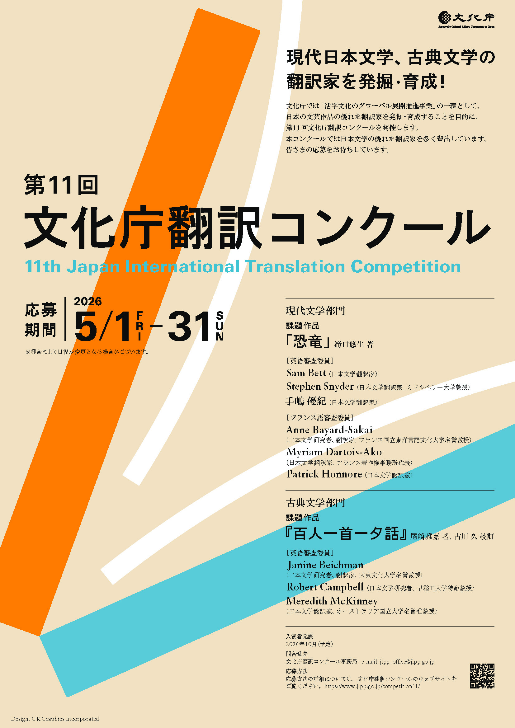 「第11回文化庁翻訳コンクール」実施要項発表 ー 現代文学部門(英語/フランス語)・古典文学部門(英語)ー -