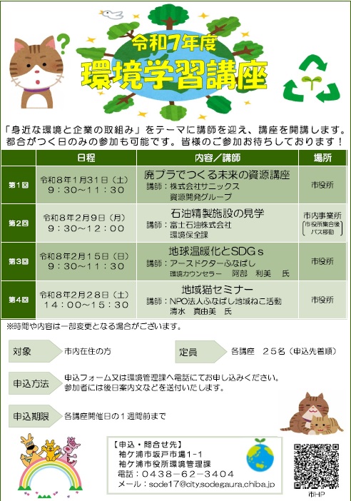 【千葉/袖ケ浦】「令和7年度環境学習講座」を開催します