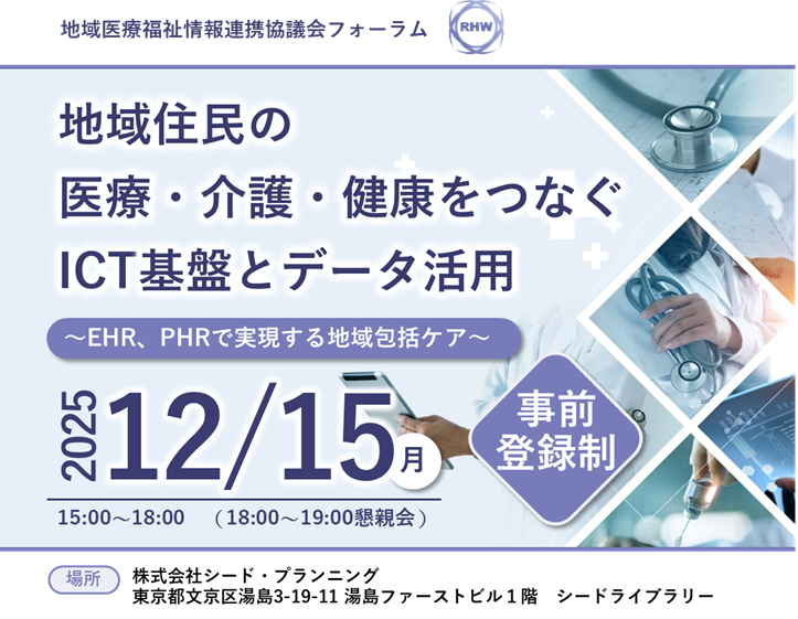 【12/15開催】地域医療福祉情報連携協議会 フォーラムを開催地域住民の医療・介護・健康をつなぐICT基盤とデータ活用 -