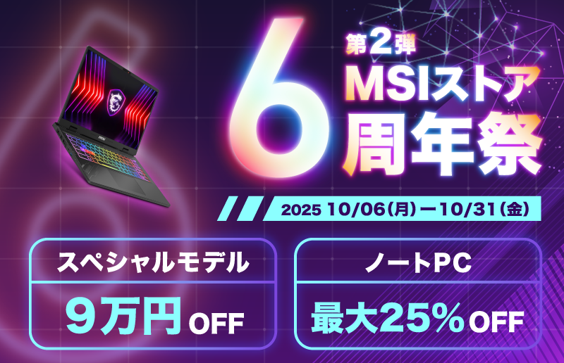 ハイスペックノートPCが最大25%OFF!スペシャルモデルが9万円OFF!!「MSIストア 6周年祭 第2弾」開催