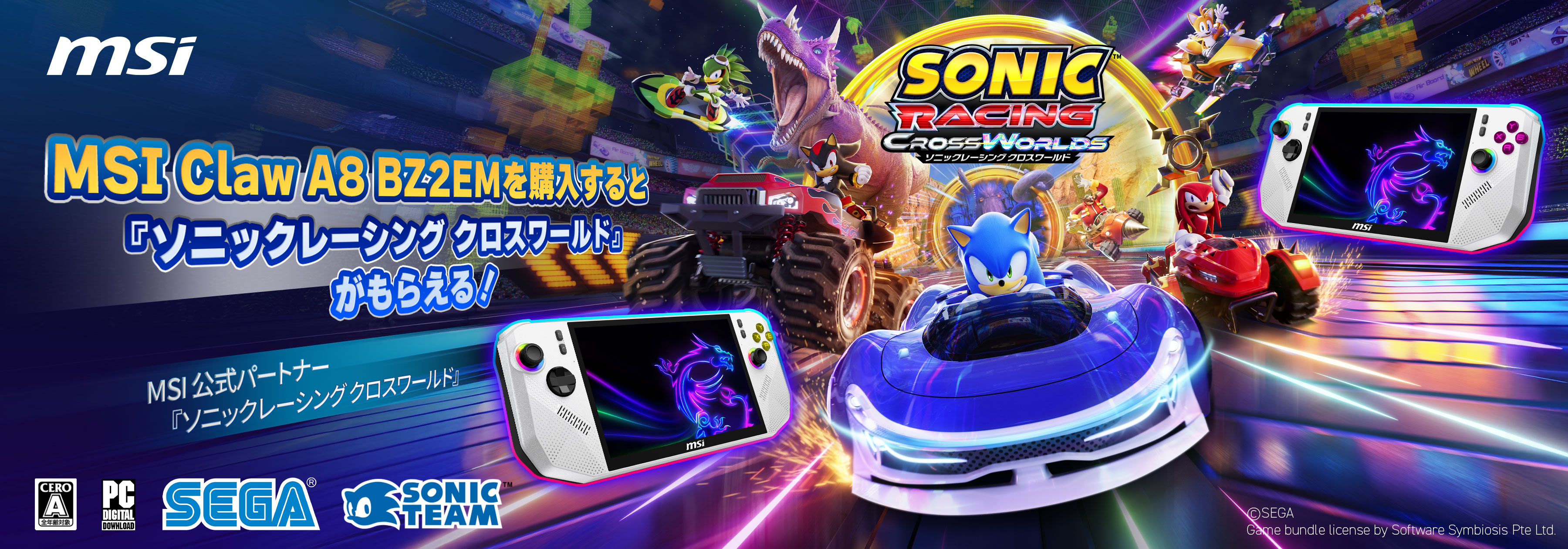 MSI Claw A8 BZ2EMを購入すると『ソニックレージング クロスワールド』がもらえる! ゲーム本体 プレゼントキャンペーン
