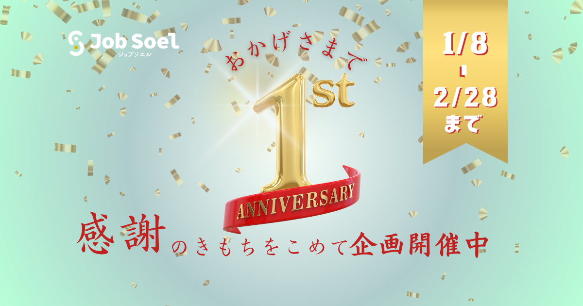 【ジョブソエル】1周年記念キャンペーンを開催|医療・介護・福祉分野に“感謝”と“応援”を。1月8日(水)より『求職者向け体験ギフト抽選企画』『企業向け採用応援特典』を同時実施 -