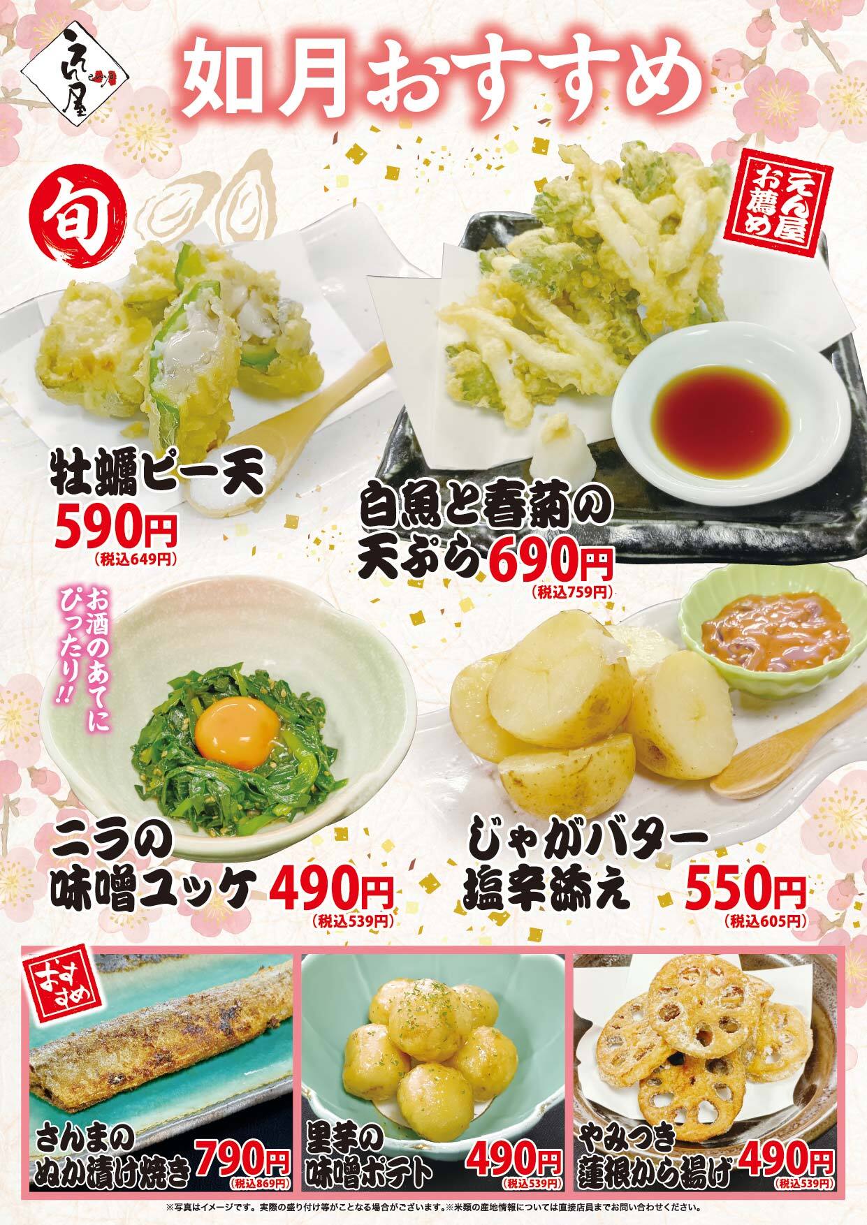 海鮮居酒屋「地魚屋」如月のおすすめ 7メニュー 2月1日(日)~ 2月28日(土)販売いたします -