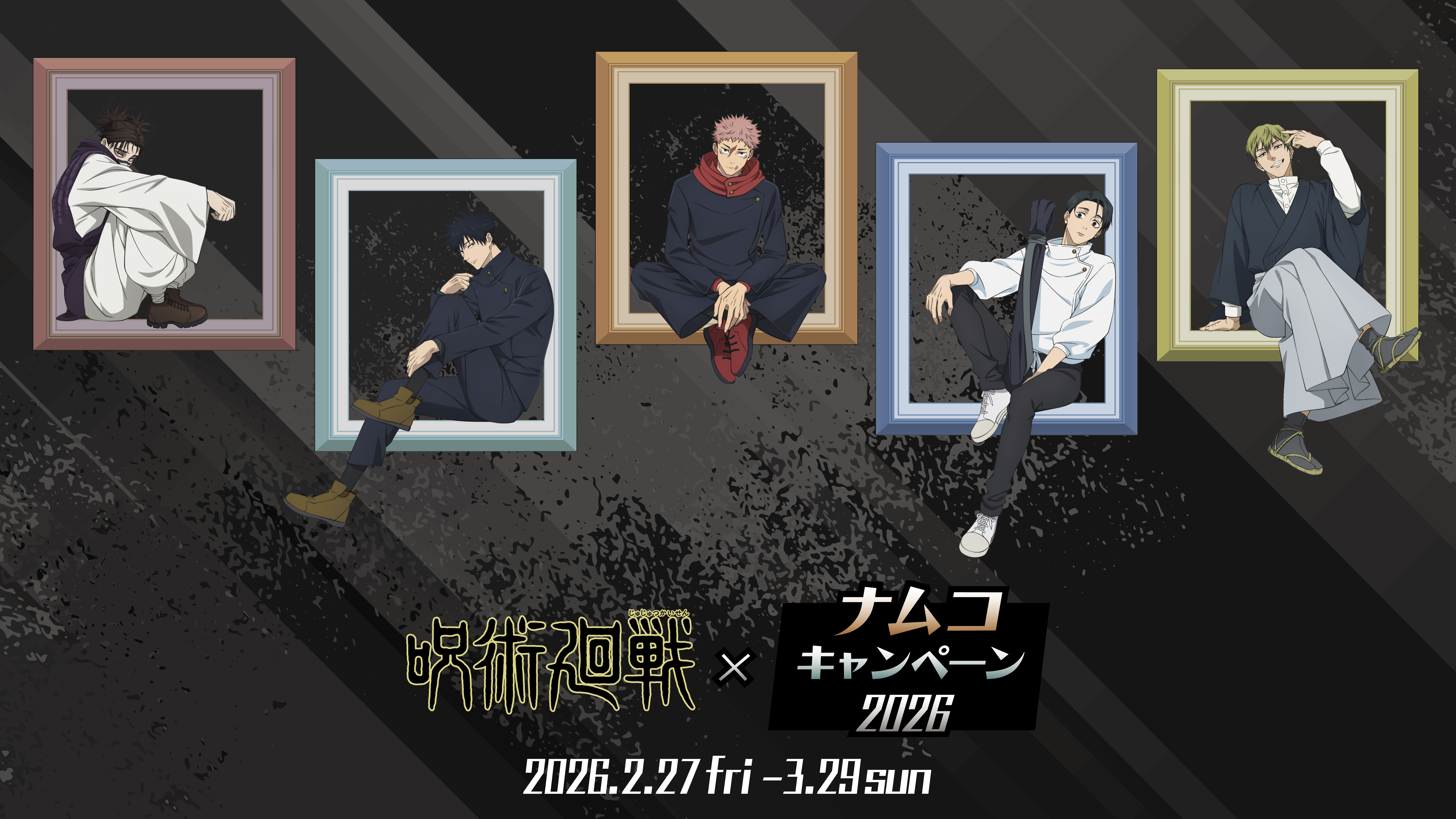 フレームに座る姿がかっこいい、描き下ろしイラストの景品・特典が登場! TVアニメ「呪術廻戦」×ナムコキャンペーン 2026 -