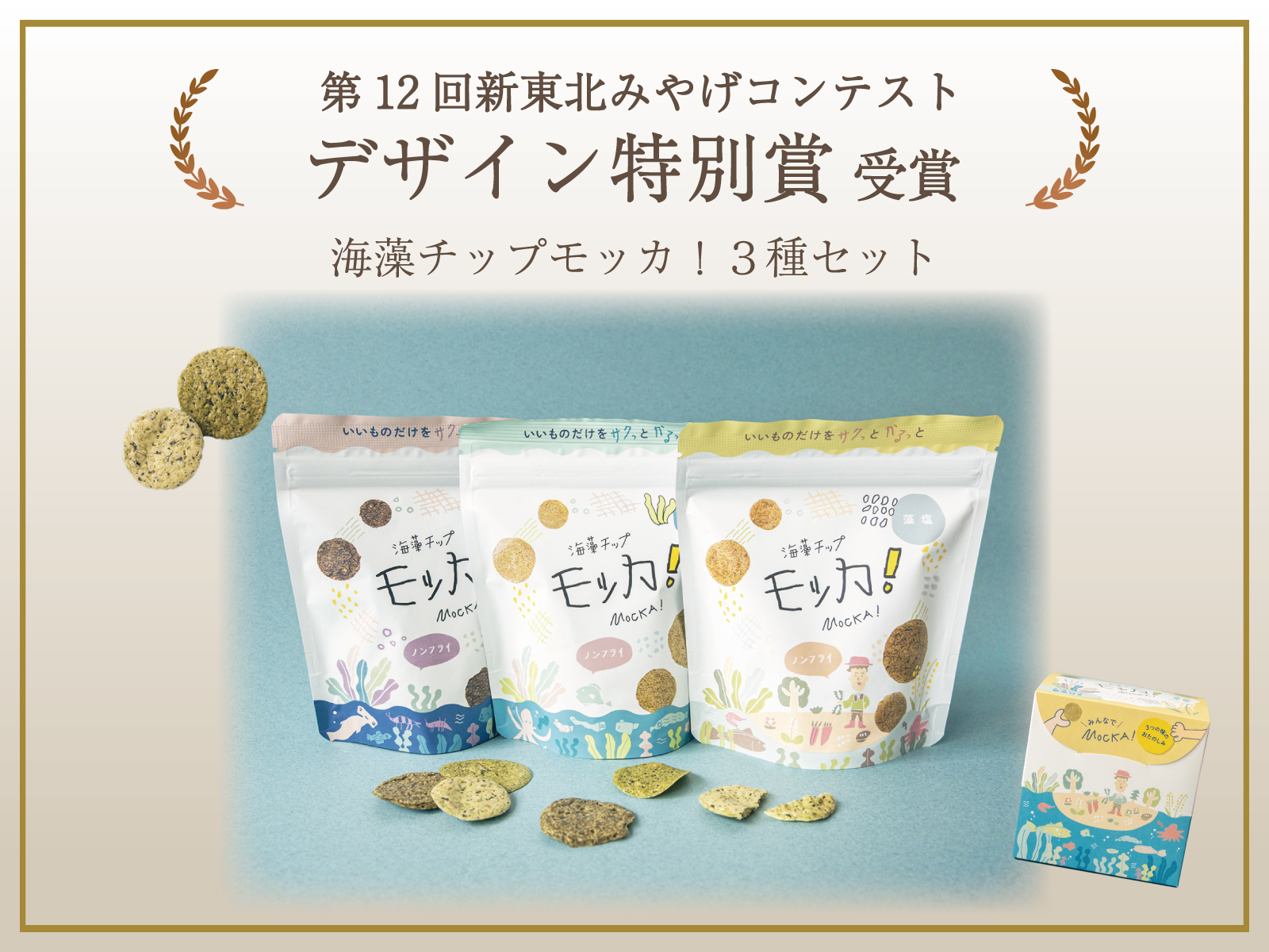 「第12回新東北みやげコンテスト」においてデザイン特別賞を受賞。グルテン・アレルゲンフリーの海藻と米粉の焼菓子「海藻チップモッカ!」 -