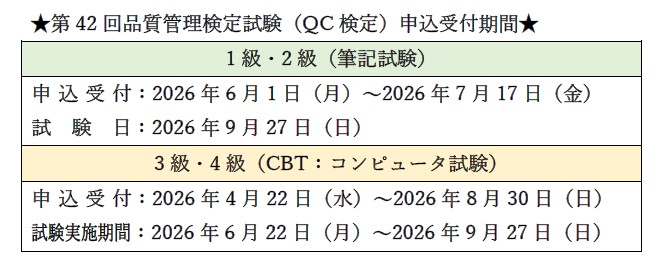 【累計申込者175万人突破!!】第42回品質管理検定(QC検定)の申込受付が始まります! -
