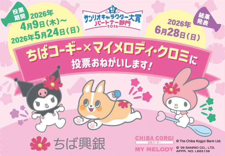 2026年サンリオキャラクター大賞 パートナー部門に「ちばコーギー×マイメロディ・クロミ」がエントリーします!