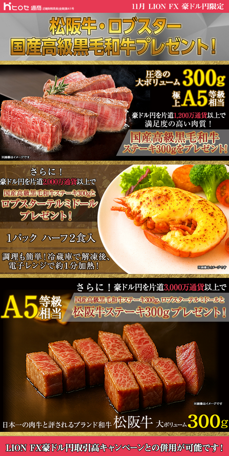 LION FX豪ドル円限定 松阪牛・ロブスター・国産高級黒毛和牛プレゼント!を実施!