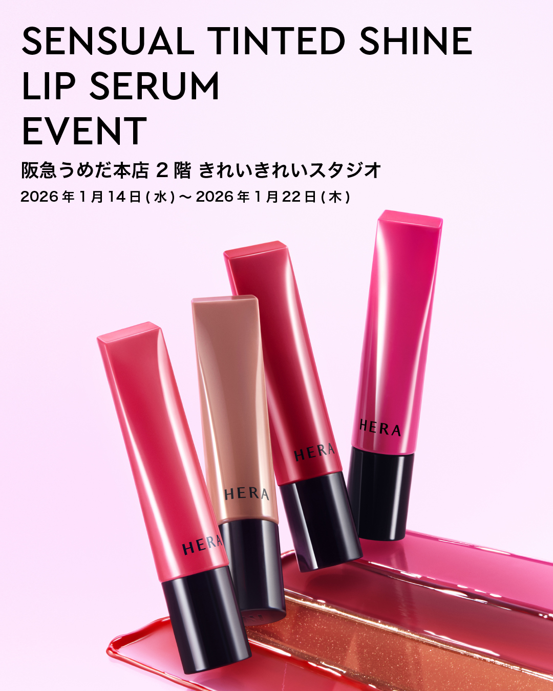 韓国・ソウル発のラグジュアリーメイクアップブランド「HERA(ヘラ)」が、阪急うめだ本店 2階 きれいきれいスタジオにて新商品〈センシュアル ティンティッドシャイン リップセラム〉イベントを開催。 -