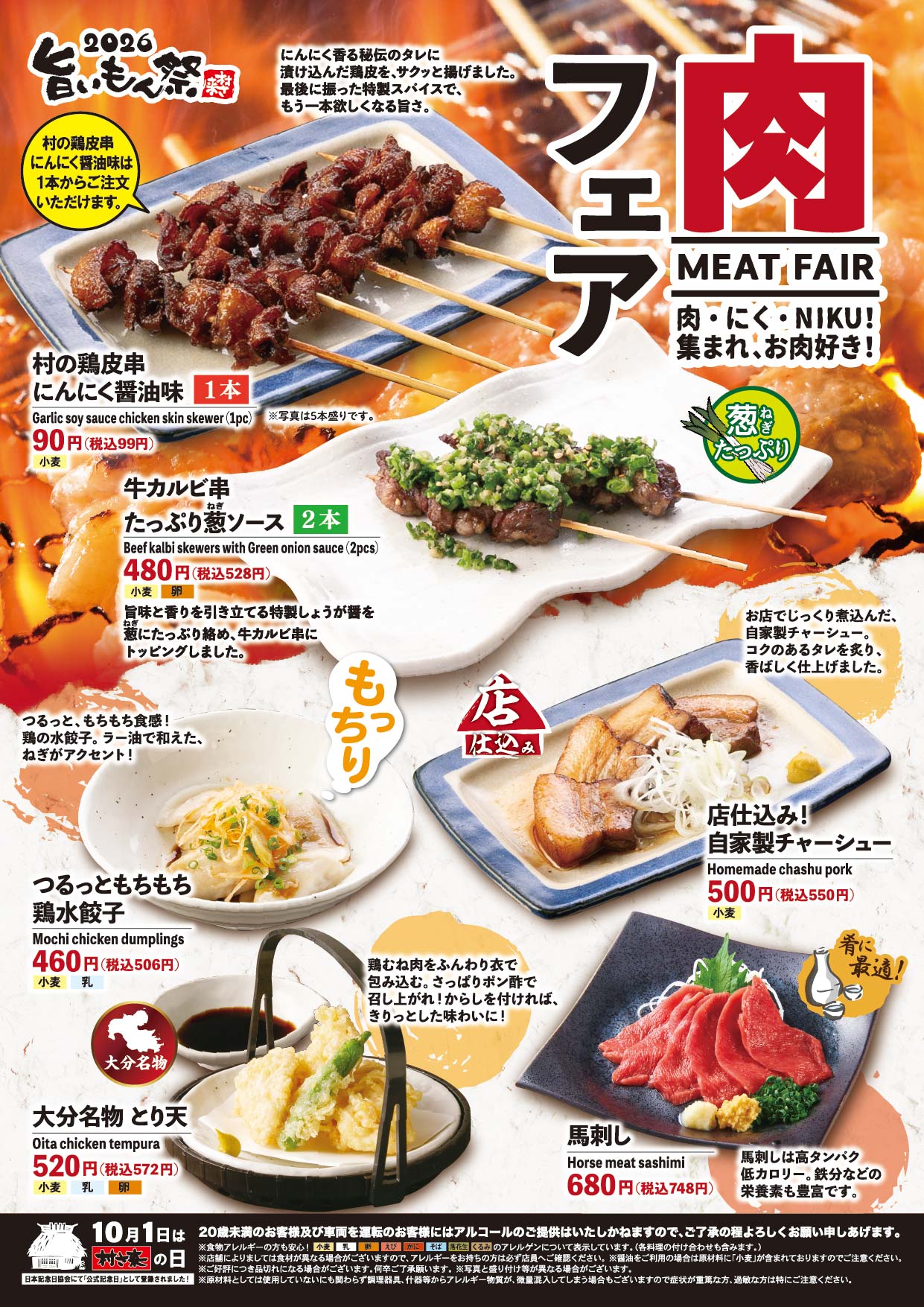 居酒屋「村さ来」 八田店(名古屋市)・新大阪店(大阪市)1月15日(木)から 「村さ来 旨いもん祭 2026・肉フェア」を開催! -