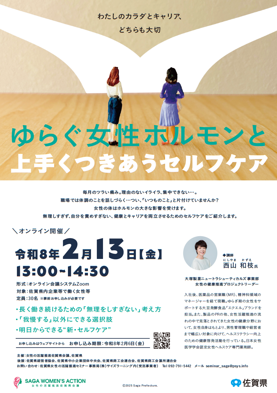 佐賀県が働く女性の健康とキャリアの両立を後押し「ゆらぐ女性ホルモンと上手くつきあうセルフケア」2/13オンラインセミナー開催 -