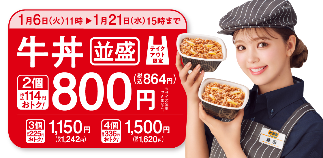 吉野家の新年スタートは牛丼並盛のテイクアウトがお得に!‐人気の「厚切り豚角煮定食」も本日より期間限定で販売開始‐ -