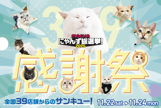 総選挙で上位に輝いたにゃんずたちが主役の3日間特別衣装でお出迎え&フォト風カードも数量限定で登場「MOCHAにゃんず総選挙2025感謝祭」開催決定 -