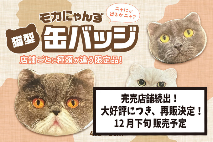 発売からわずか1週間で売り切れ続出の新作グッズ!MOCHAファンの熱い声に応えて、待望の追加販売が決定「モカにゃんず猫型缶バッジ ~vol.1~」再販スタート -
