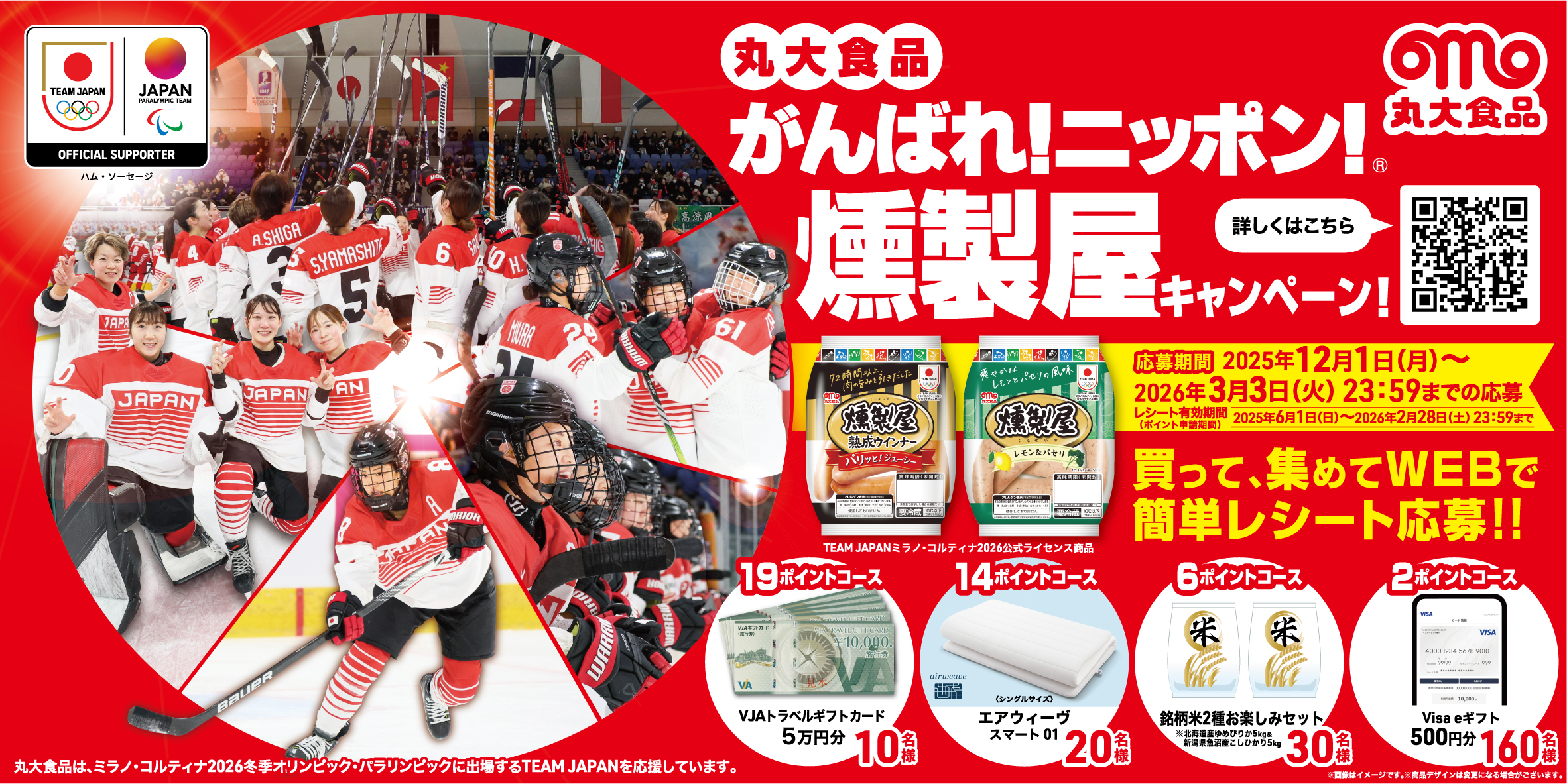 たくさん食べて、ポイントを集めて豪華賞品を当てよう!~「丸大食品がんばれ!ニッポン!燻製屋キャンペーン!」~ -