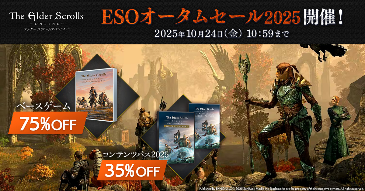 『エルダー・スクロールズ・オンライン』DMM日本語版「ESOオータムセール2025」開催中! 「ベースゲーム」と「コンテンツパス」をお得に購入するチャンス! -