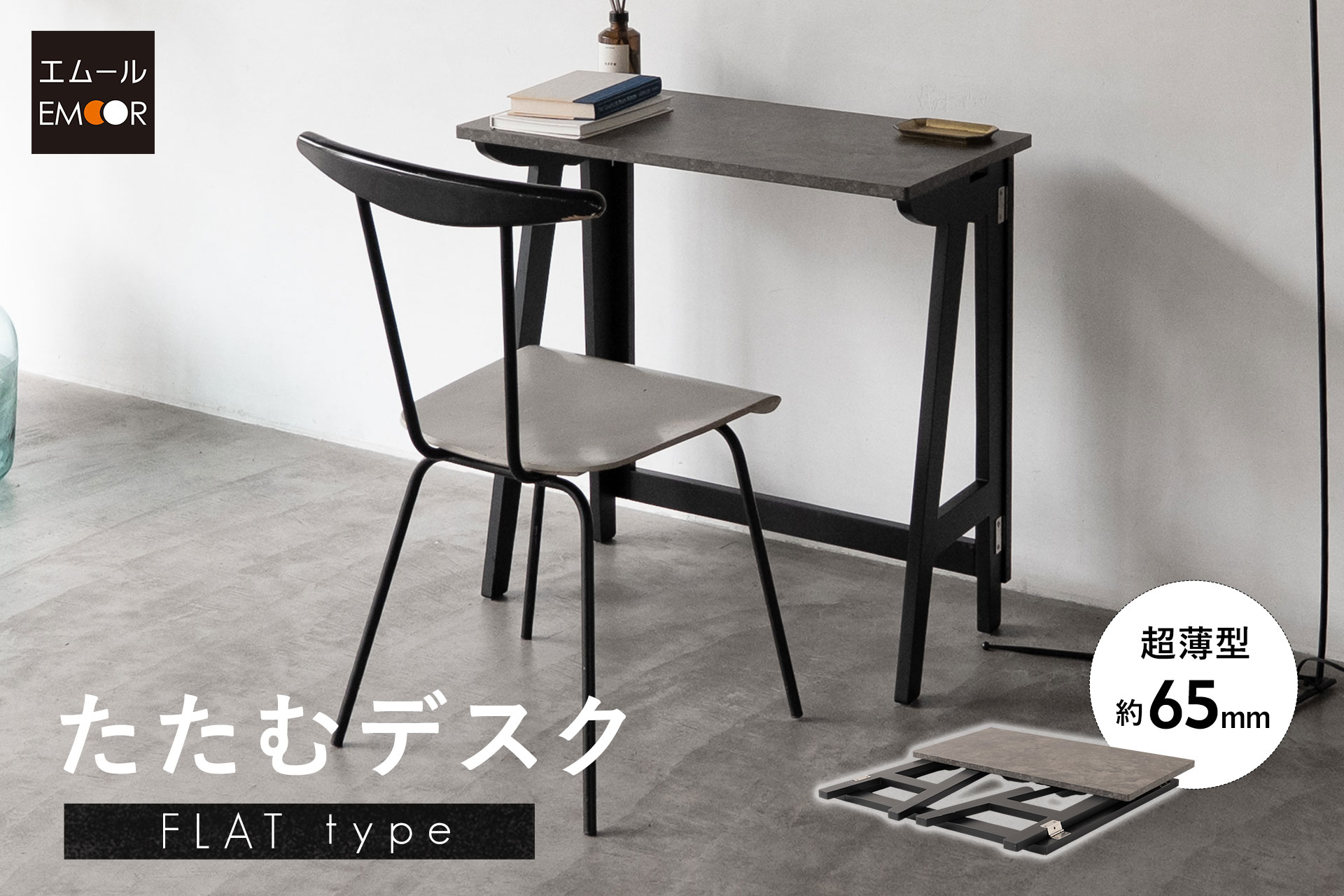 畳めば約65mmの超極薄に。収納を前提に設計されたフルフラット構造の折りたたみデスク【たたむデスク・フラットタイプ】が新登場!~ふだんは希薄な存在感。必要なときにだけ十分な使い心地~ -