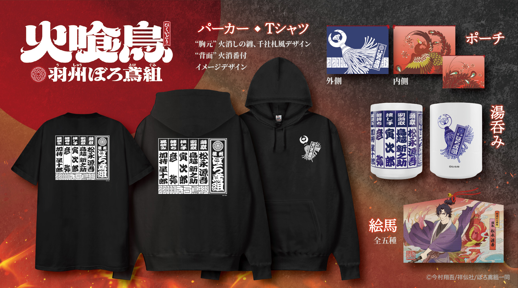 TVアニメ『火喰鳥 羽州ぼろ鳶組』より、「火消番付」をイメージしたアパレル、浮世絵風の絵馬アートなど粋な新作グッズが登場! -