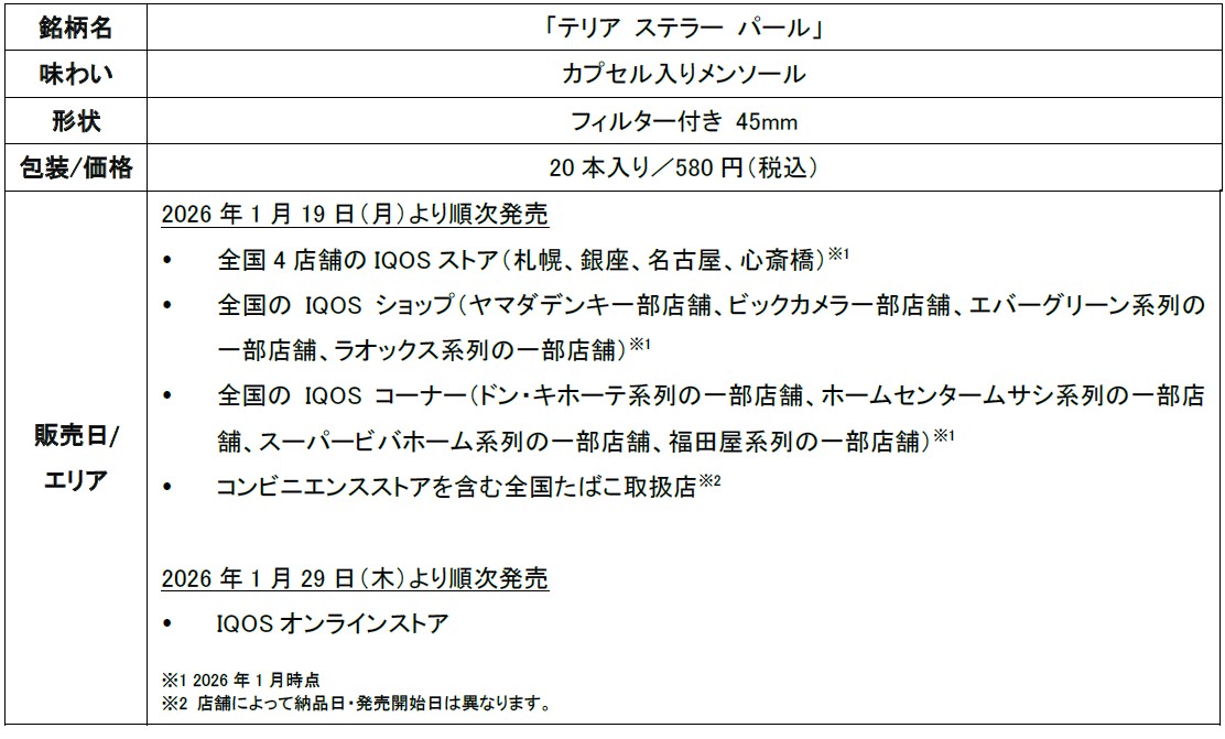 「IQOS ILUMA」シリーズ専用たばこスティック「TEREA」から「テリア ステラー パール」を2026年1月19日(月)より順次発売 -