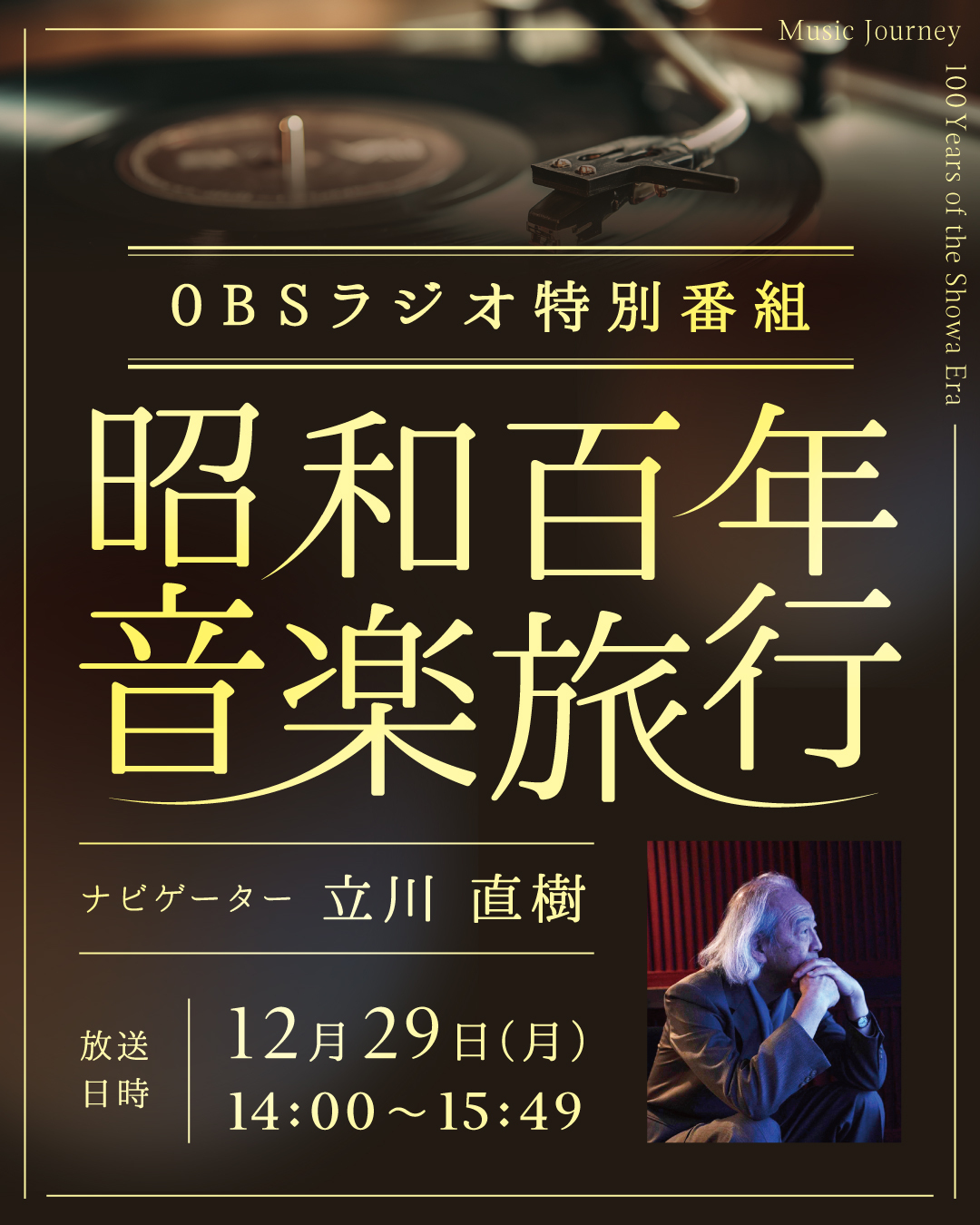 昭和百年を音楽でめぐる時の記憶。プロデューサー・立川直樹が誘うOBSラジオ特別番組「昭和百年音楽旅行」。 12月29日(月)放送決定! -