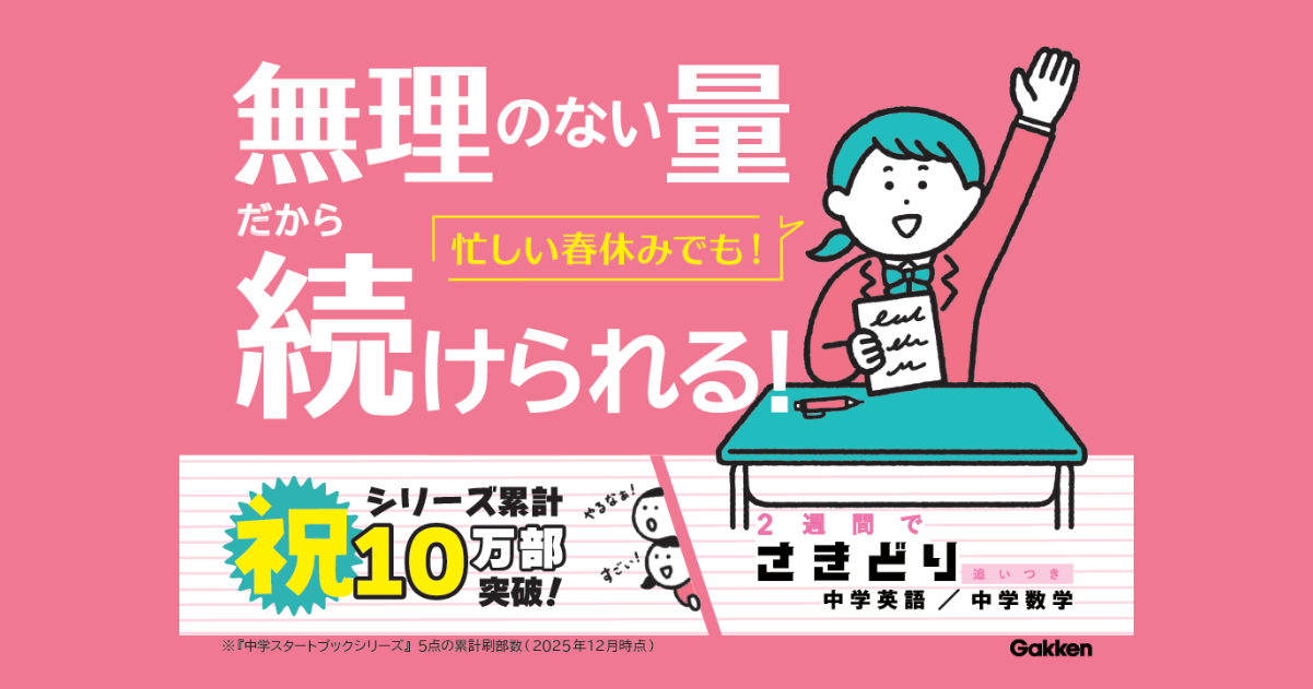 【入学前にスタートダッシュ!】シリーズ累計10万部突破『さきどり追いつき 中学英語/中学数学 新装版』、春休みにぴったりの参考書が重版決定! -