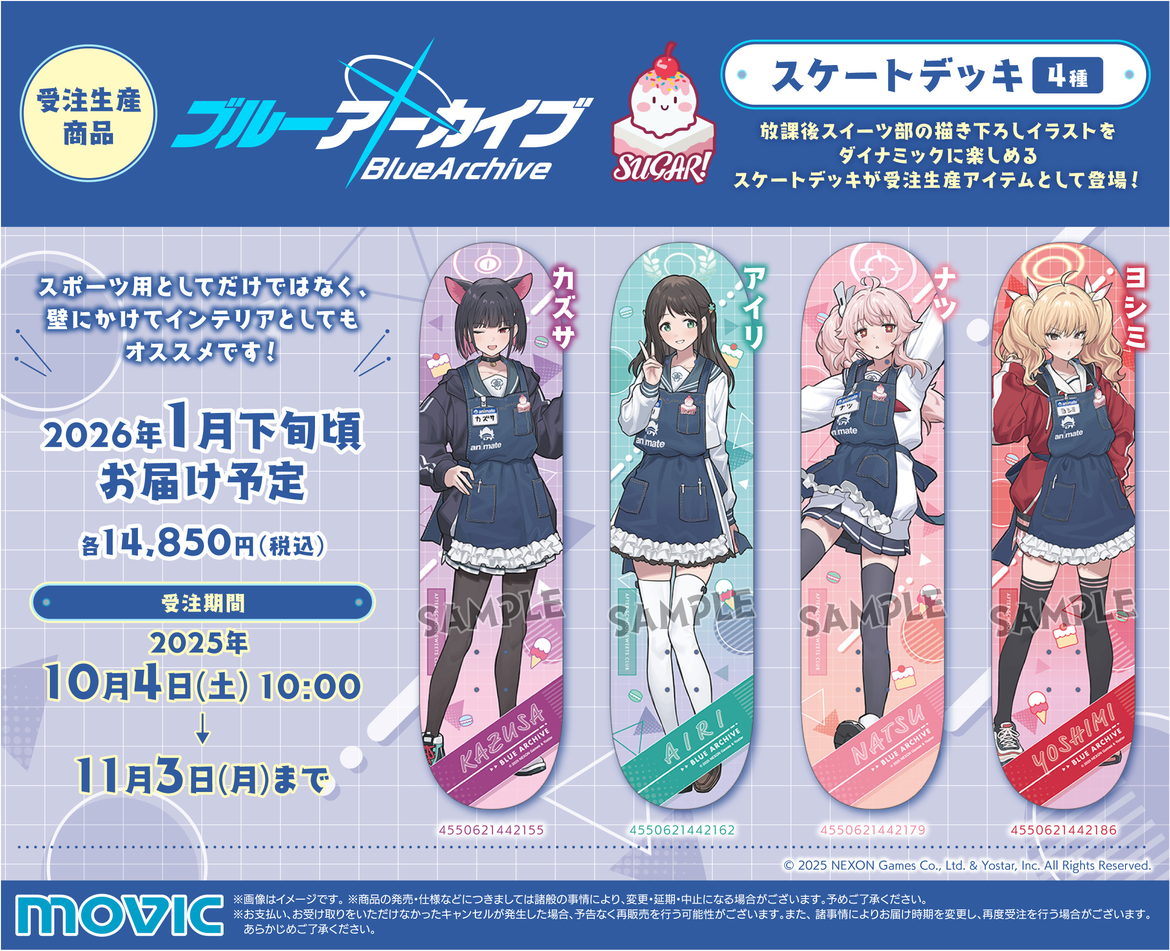人気アプリゲーム『ブルーアーカイブ』より、スケートデッキが受注生産商品で登場!