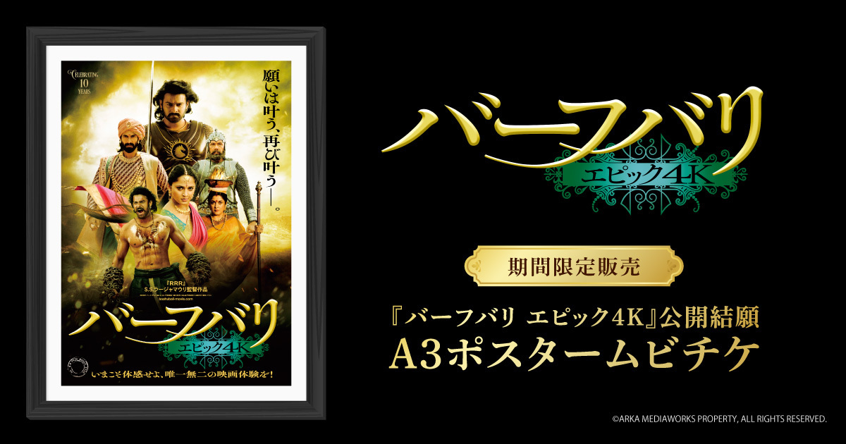 S.S.ラージャマウリ監督自らの手で再編集&一部追加シーンで”1つの作品”に『バーフバリ エピック4K』公開結願A3ポスタームビチケを期間限定販売! -
