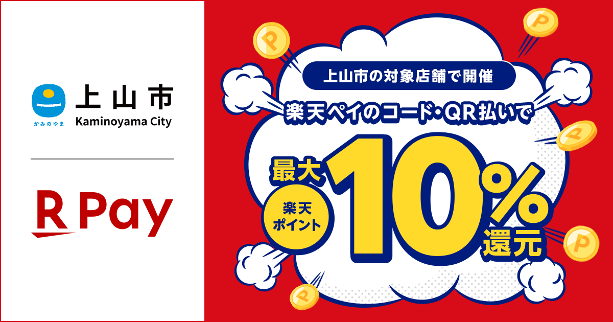 「楽天ペイ」、山形県上山市が実施する「上山市にござってぇ!キャッシュレスで最大10%戻ってくるキャンペーン 第四弾」に参加 -