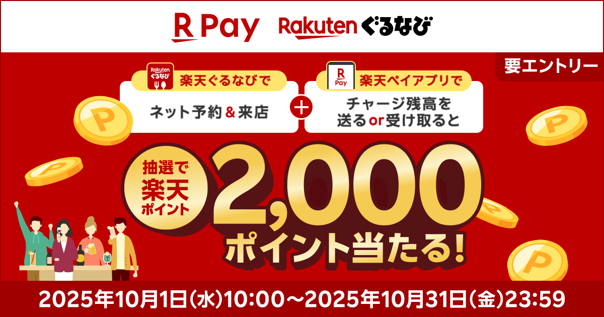 「楽天ペイ」「楽天ぐるなび」、抽選で2,000ポイントプレゼントキャンペーンを実施 -