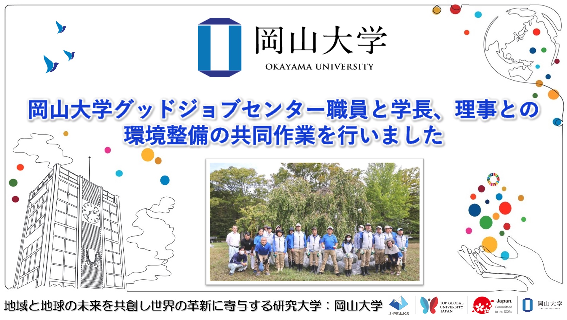 【岡山大学】岡山大学グッドジョブセンター職員と学長、理事との環境整備の共同作業を行いました -