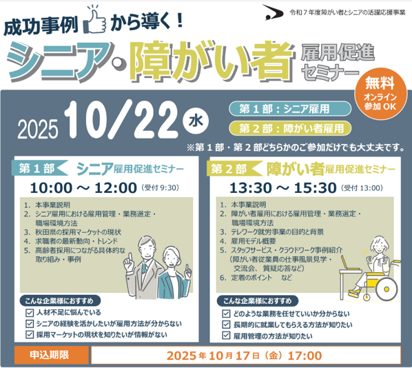 【人材総合サービスの株式会社スタッフサービス】秋田県のシニアと障がい者の就業拡大へ「令和7年度障害者とシニアの活躍応援事業」を受託 -