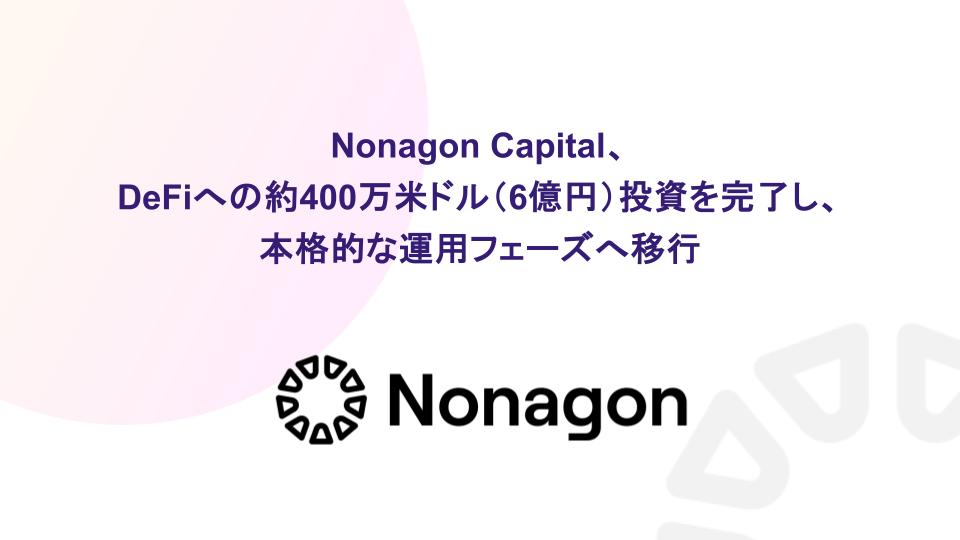 Nonagon Capital、DeFiへの約400万米ドル(6億円)投資を完了し、本格的な運用フェーズへ移行 -