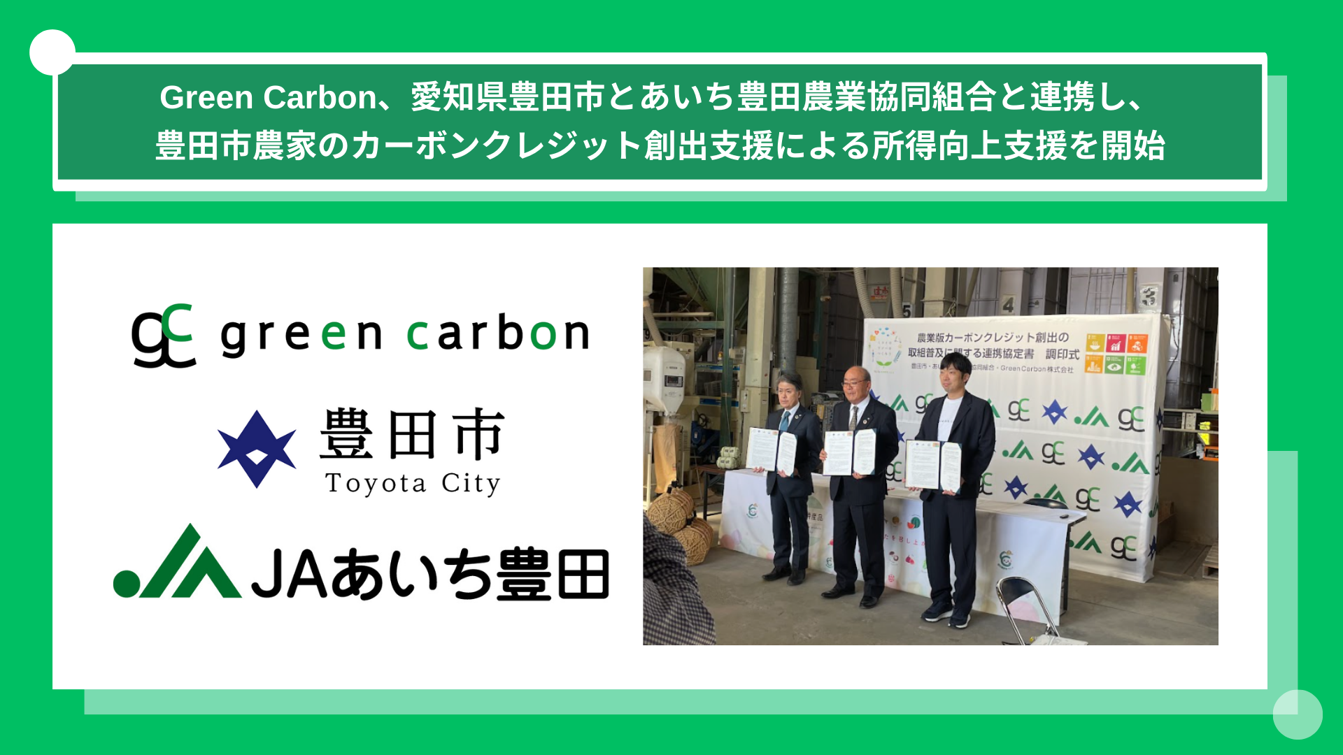 Green Carbon株式会社は、愛知県豊田市とあいち豊田農業協同組合と連携し、豊田市農家のカーボンクレジット創出支援による所得向上支援を開始 -